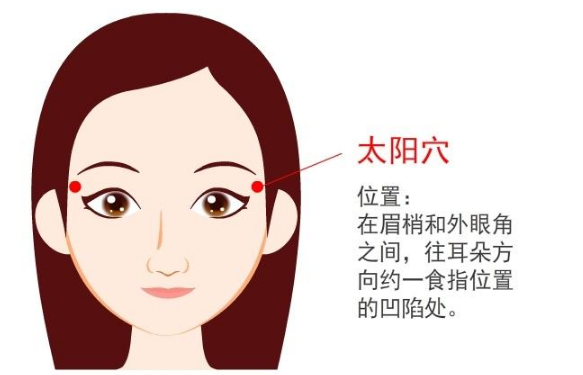 左右拇指放在穴位上打圈按揉,其他四指支撐在額上。