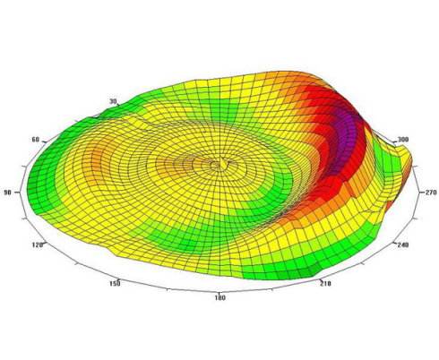 從圓錐角膜臨床前期,到進展期,完成期,急性水腫等數(shù)個階段,每一個階段角膜都會出現(xiàn)變形,發(fā)展到后期變形越嚴重,角膜地形圖這項檢查正好可以準確地展現(xiàn)角膜的形狀,讓圓錐角膜無所遁形。