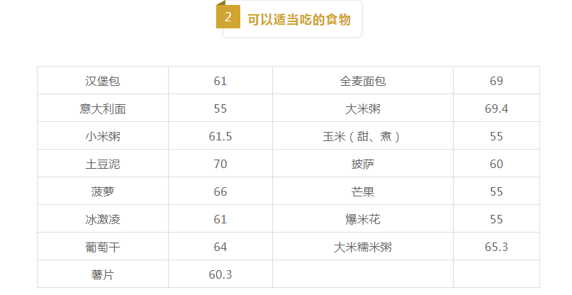 ◆當(dāng)血糖生成指數(shù)在55~70之間時(shí),該食物為中等GI食物;