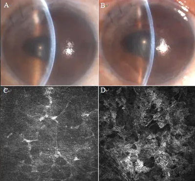 真菌性角膜炎是一種由致病真菌引起的、致盲率極高的感染性角膜病。常見的致病菌為曲霉菌,其次為鐮刀菌、白色念珠菌、頭芽胞菌及鏈絲菌等??沙霈F(xiàn)免疫環(huán)、衛(wèi)星灶、偽足、菌絲苔被、前方積膿及內(nèi)皮斑。