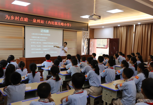 華廈泉州眼科醫(yī)院小兒眼科學(xué)科帶頭醫(yī)生孫紅主任給學(xué)生做護(hù)眼講座