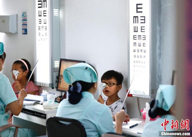8月25日,小朋友在廈門眼科中心醫(yī)院驗光