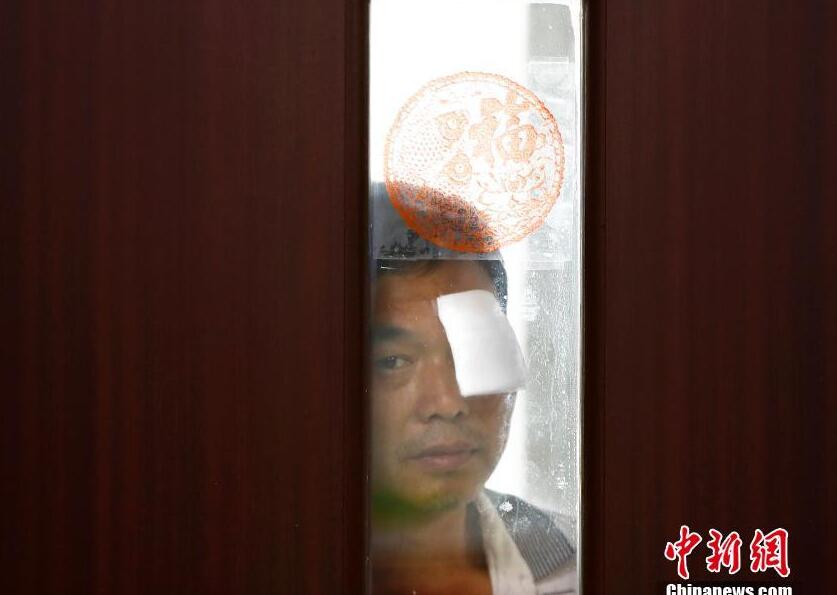 8月25日,做完眼部手術(shù)的患者在廈門眼科中心醫(yī)院病房內(nèi)向外觀望