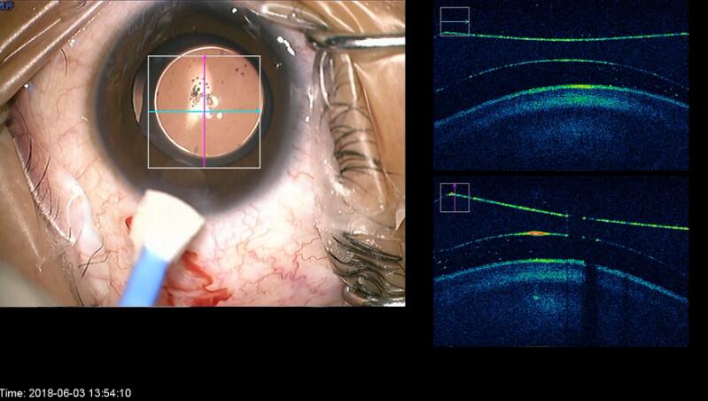 廈門大學(xué)附屬廈門眼科中心總院長黎曉新教授已使用該術(shù)中OCT完成了不少眼底手術(shù),她以黃斑手術(shù)為例介紹說,作為視網(wǎng)膜重要的結(jié)構(gòu),黃斑手術(shù)的精密度要求非常高。在黃斑裂孔手術(shù)中,術(shù)中OCT可以實時監(jiān)控整個過程,核心步驟完成,可以立即掃描,觀察OCT來評估手術(shù)作用,預(yù)測術(shù)后恢復(fù),對于手術(shù)起到重大的保障和提高,使得手術(shù)質(zhì)量得到跨越式地提升。