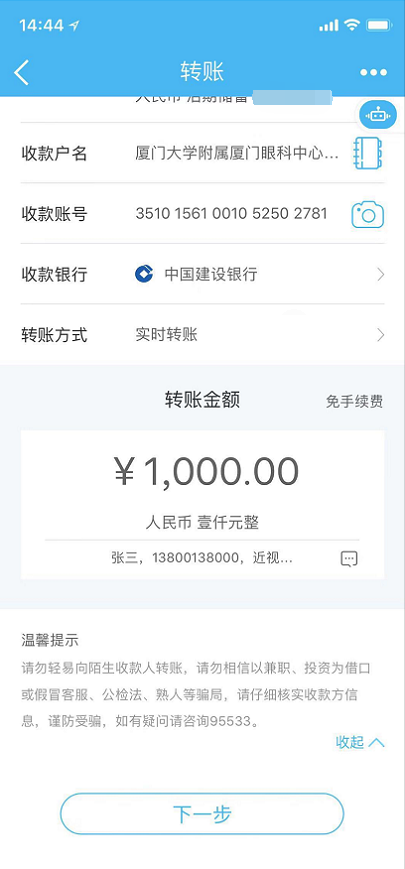 通過對公賬戶繳費(fèi)的患者需要標(biāo)注姓名+電話+近視手術(shù)開放日。