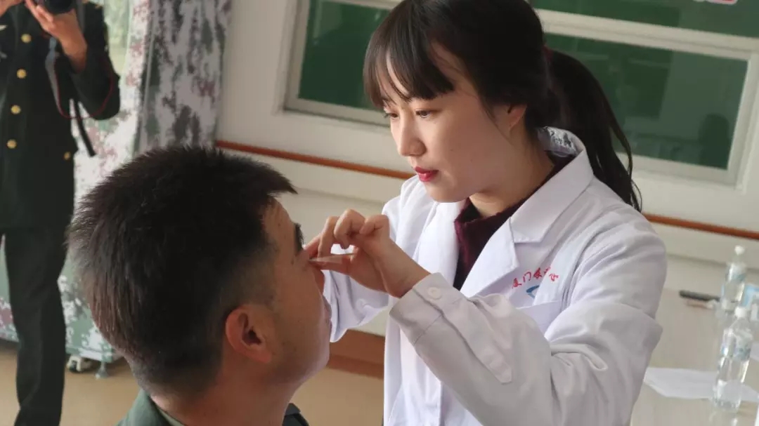 吳護(hù)平副院長(zhǎng)為戰(zhàn)士們做眼部檢查