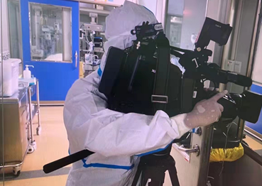 ( 圖為廈門電視臺(tái)攝影記者鄒晨鷺在定點(diǎn)醫(yī)院拍攝 供圖:官宇 )
