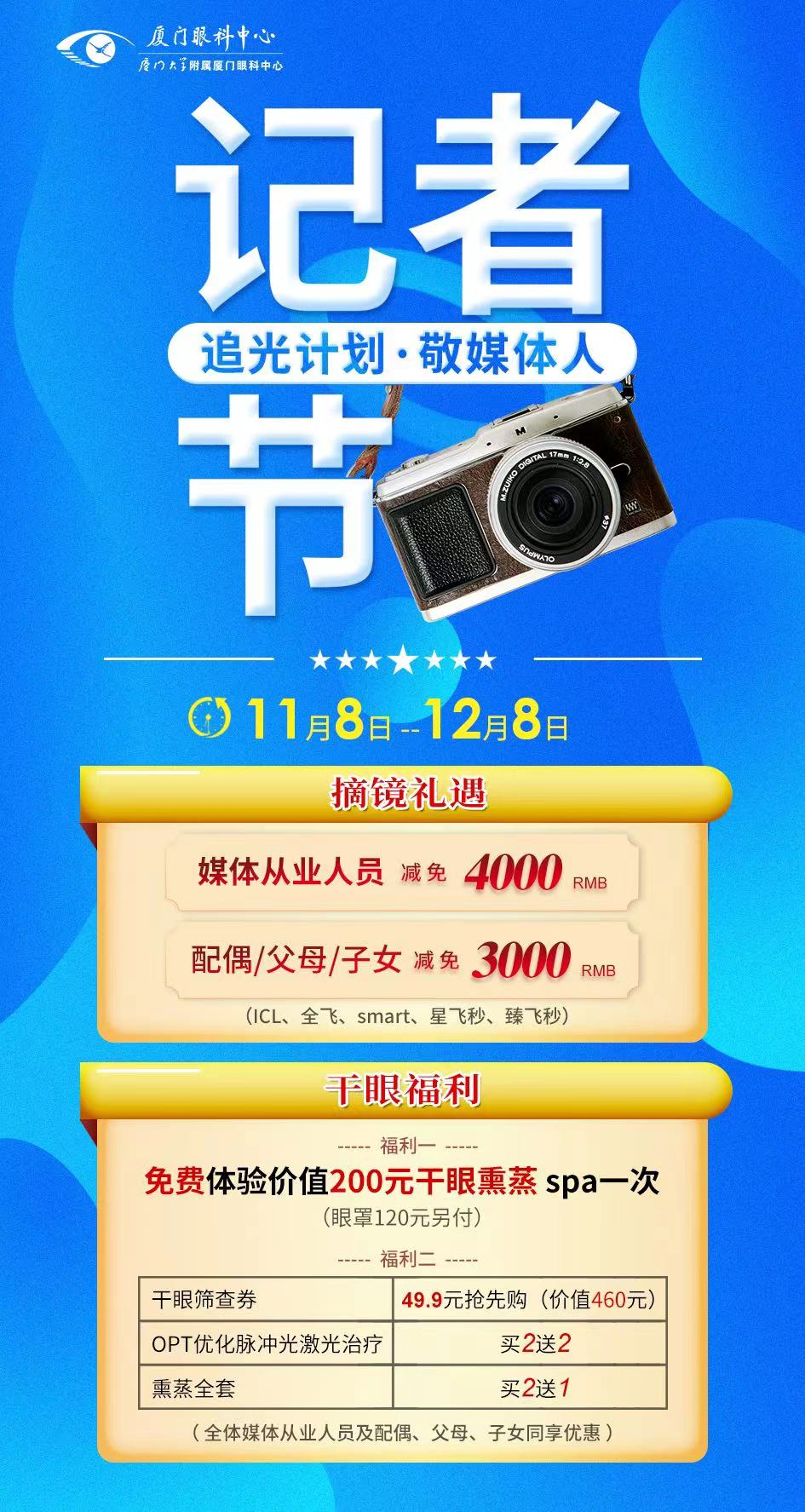 在記者節(jié)這個(gè)特殊的日子,廈門眼科中心為媒體人眼健康保駕護(hù)航!為你們帶來清晰和睛彩的視界!