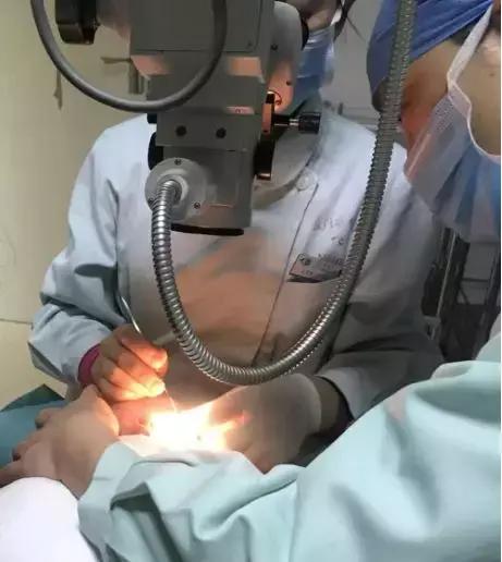 商旭敏博士看過后,王芬琴護士長用眼用刮匙在表麻下,不到1分鐘就將寶寶的異物取了出來。