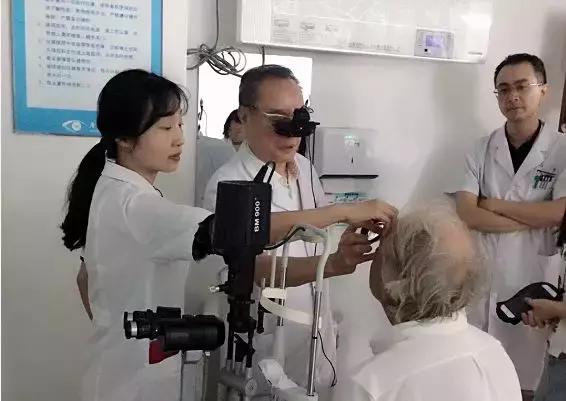 ▲吳國基院長(zhǎng)為大衛(wèi)進(jìn)行眼部檢查