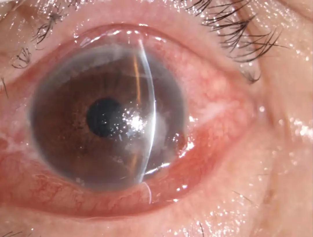 林伯確診為“左眼真菌性角膜潰瘍”。但因?yàn)榱植畞?lái)診治的時(shí)間太遲,感染已經(jīng)非常嚴(yán)重,保守的藥物治療不起作用,需要移植角膜。