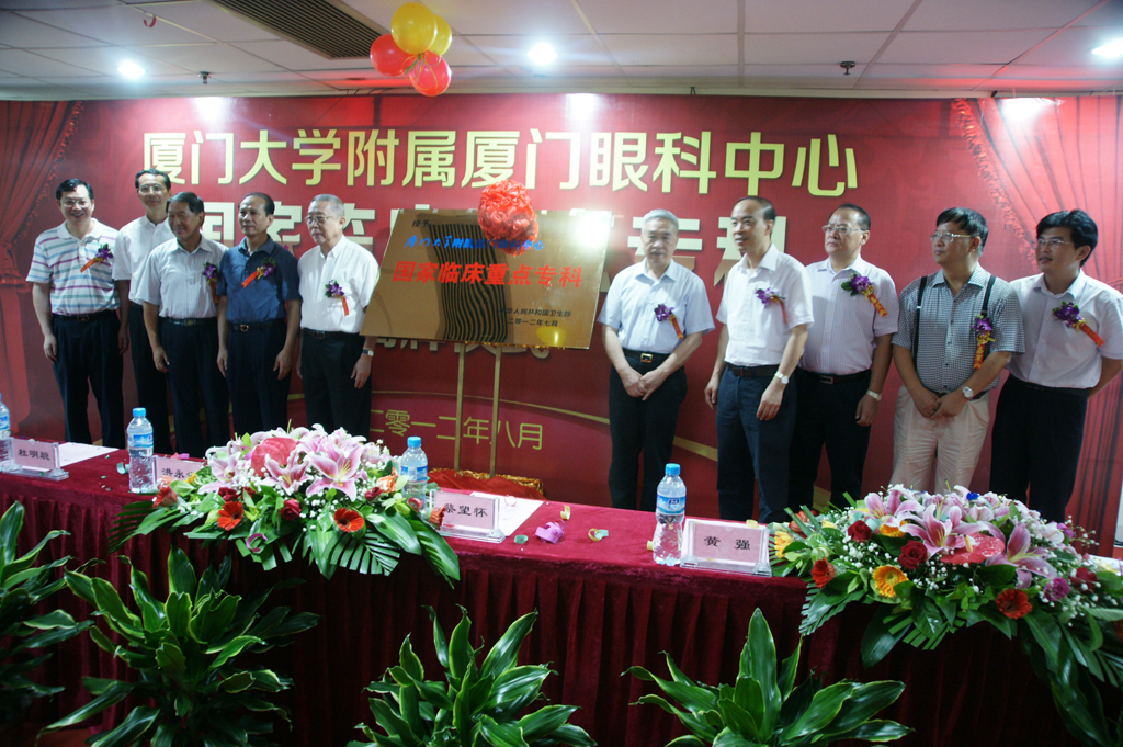 2012年8月18日,在廈門市市委、市政府、市衛(wèi)生局等的大力支持下,廈門眼科中心舉辦了隆重的揭牌儀式。原廈門市委書記洪永世、原廈門市政協(xié)主席蔡望懷、廈門市人大常務(wù)副主任杜明聰、廈門市人民政府副市長(zhǎng)黃強(qiáng)、廈門市政協(xié)副主席潘世建、廈門市衛(wèi)生局黨組書記、局長(zhǎng)楊叔禹、廈門大學(xué)副校長(zhǎng)賴虹凱、廈門市人民政府辦公廳副巡視員蔡偉中等市領(lǐng)導(dǎo)出席了揭牌儀式。儀式上,廈門眼科中心董事長(zhǎng)蘇慶燦先生向與會(huì)嘉賓介紹了廈門眼科中心近幾年突飛猛進(jìn)的發(fā)展歷程,從1997年成立至今,經(jīng)歷15年的發(fā)展與積淀,目前,該院已成為“福建眼科領(lǐng)跑者”,是福建眼科的一面旗幟,在多個(gè)領(lǐng)域處于全國(guó)先進(jìn)水平。2011年,該院70%以上的病人來自于廈門以外的地區(qū),3%來自于國(guó)外,主要業(yè)務(wù)指標(biāo)均居全國(guó)同行排名靠前。