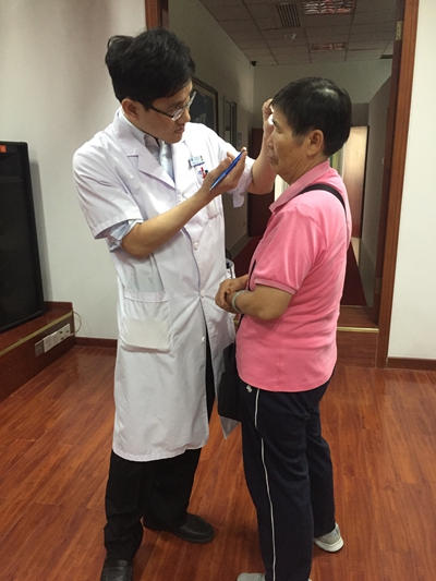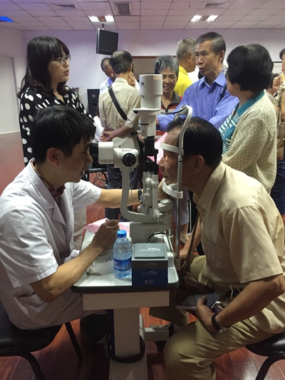 商旭敏博士用裂隙燈為患者檢查眼睛