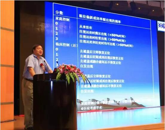 中華醫(yī)學會眼科學分會前任主任委員、中國醫(yī)師協(xié)會眼科醫(yī)師分會會長趙堪興教授在大會上做了關于“兒童常見斜視手術時機”的主題演講。趙教授認為,兒童常見斜視主要有三類:內(nèi)斜視(ET)、外斜視(XT)、上斜肌麻痹(SOP)。在演講中,他和同仁分享了臨床了幾例疑難斜視病例的診斷過程、手術方案以及治療效果,并闡述兒童斜視早期干預是基于視覺發(fā)育規(guī)律決定的,具有豐富內(nèi)涵不只是盡早手術。先天性內(nèi)斜視破壞雙眼視覺發(fā)育,需2歲前完成,以爭取粗的立體視;間歇性外斜視宜在控制力明顯下降時手術,術前應能夠較準確檢查斜視角以減少破壞雙眼視的風險,3歲以前手術需慎重;先天性上斜肌麻痹需早期手術以保護雙眼視力,減少面部與脊柱發(fā)育畸形。