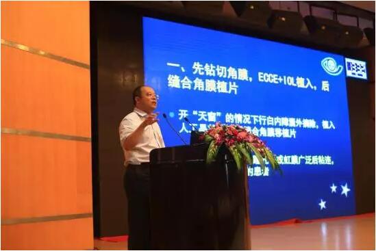 山東省眼科醫(yī)院的史偉云教授帶來了“角膜移植聯(lián)合白內(nèi)障摘除人工晶狀體植入術的設計”的主題演講。他主要以播放手術錄像來講解這個比較復雜的三聯(lián)手術,生動又直觀。在手術技巧和圍手術期處理上,他重點闡述了IOL植入前屈光度的計算、術前瞳孔的處理及麻醉和眼球軟化等4個方面。三聯(lián)手術術后處理除了按人工晶狀體植入常規(guī)處理外,從角膜移植的角度應考慮術后視力問題,要注意穿透性角膜移植的并發(fā)癥,還要同時注意白內(nèi)障手術后等問題。