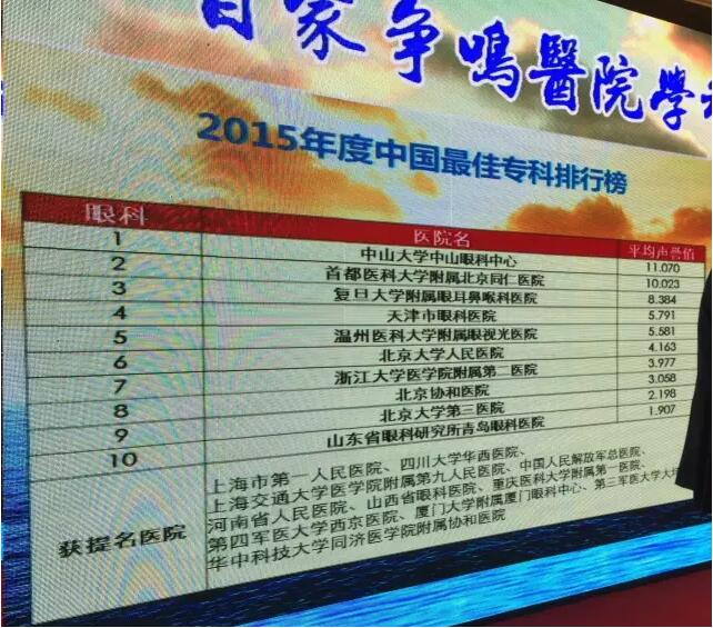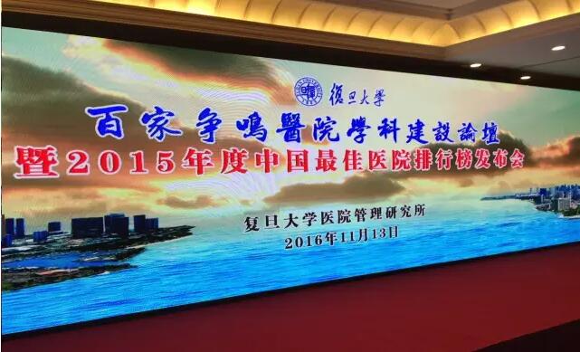 2016年11月13日,2015年度中國(guó)較佳醫(yī)院排行榜在上海發(fā)布。全國(guó)100家較佳醫(yī)院和37個(gè)較佳??泼麊谓視?,北京協(xié)和醫(yī)院、四川大學(xué)華西醫(yī)院和中國(guó)人民解放軍總醫(yī)院繼續(xù)名列中國(guó)較佳醫(yī)院排行榜前三甲。這是自 2010 年起,復(fù)旦版中國(guó)較佳醫(yī)院排行榜的第七次發(fā)布。