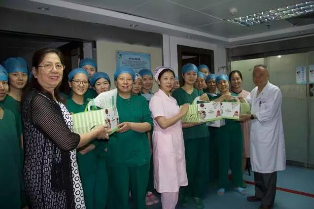 永遠(yuǎn)忙碌的白衣天使,今天依然穿梭于病房、門診、手術(shù)室、消毒室等需要她們的地方。吳國(guó)基院長(zhǎng)、陳逸恬主題帶上蛋糕、水果,來(lái)到每個(gè)樓層為堅(jiān)守崗位的護(hù)士送去慰問(wèn)、關(guān)心。