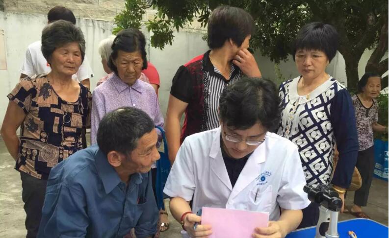 ▲廈門眼科中心楊麗杰主任為村民查眼