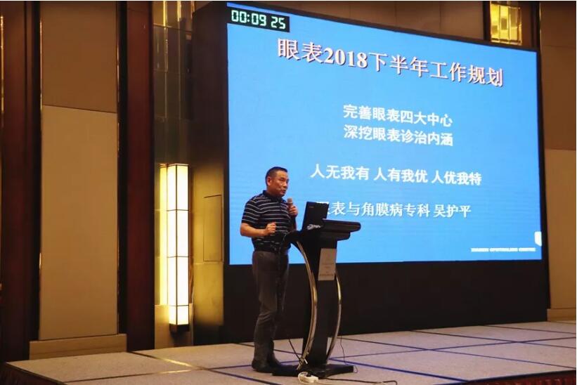 眼表及角膜病??瓶浦魅?、業(yè)務(wù)副院長(zhǎng)吳護(hù)平教授作工作匯報(bào)