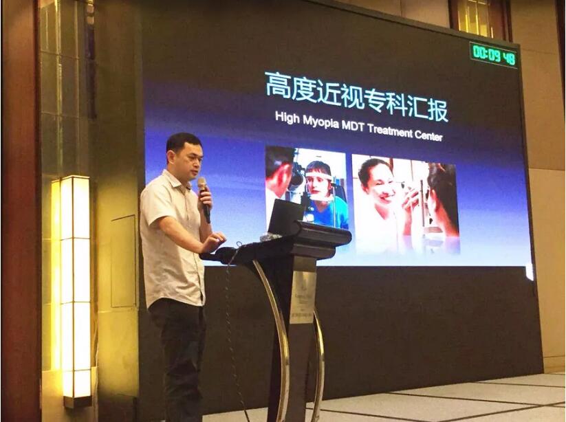 高度近視??瓶浦魅巍I(yè)務(wù)副院長(zhǎng)張淳作工作匯報(bào)