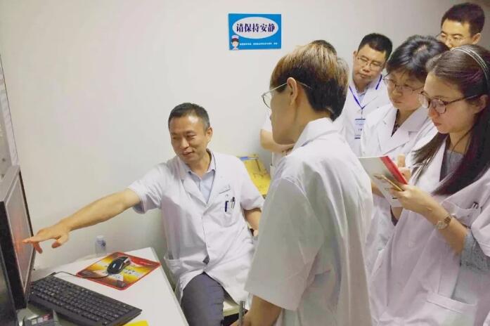 圖為黎曉新總院長為學(xué)員講解分析門診病例