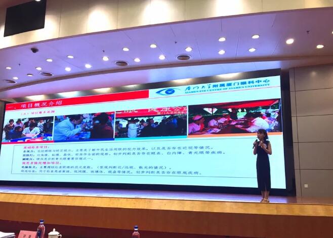 9月4日,在大賽決賽路演現(xiàn)場,廈門大學附屬廈門眼科中心副總經(jīng)理姚鄭玲玲將“光明專項基金救助行動”項目執(zhí)行的各項情況向各大賽評委做了詳細匯報,最終該項目在所有決賽項目中脫穎而出,一舉獲得“ 服務項目獎”。