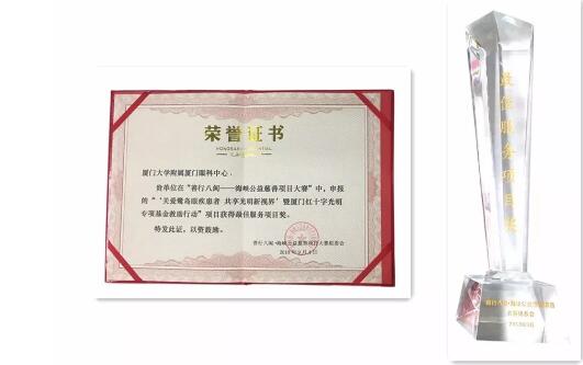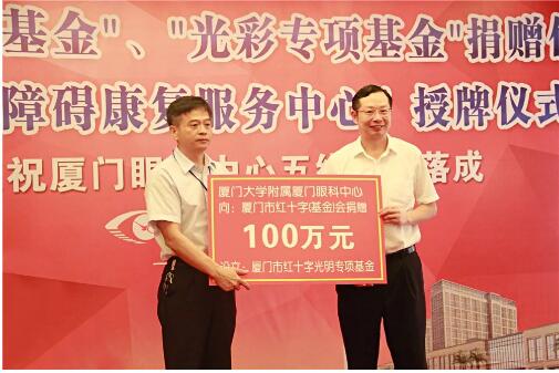 2016年7月21日,廈門大學附屬廈門眼科中心向廈門市紅十字基金會捐資100萬元,設立廈門市紅十字會(基金會)光明專項基金。在廈門紅十字會的指導支持下,廈門大學附屬廈門眼科中心派出專業(yè)醫(yī)療組深入到全市各個居委會或村部,以防盲宣教及普查的方式,為廈門人民進行眼疾篩查,并幫助患者及時治療,特別針對貧困的眼疾患者,基金提供必要的手術冶療費用救助,減輕貧困患者的經(jīng)濟負擔,幫助他們恢復光明。自基金成立以來,廈門眼科中心已捐資200余萬,為300萬余人次進行篩查眼疾,已救助近800名貧困眼疾患者。