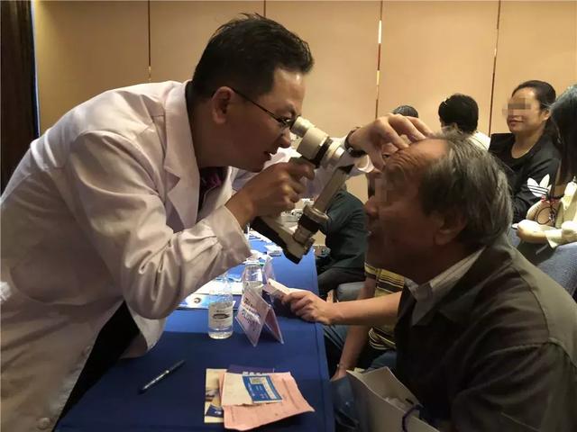 廈門大學(xué)附屬廈門眼科中心白內(nèi)障??脐惲粮敝魅吾t(yī)師為市民查眼