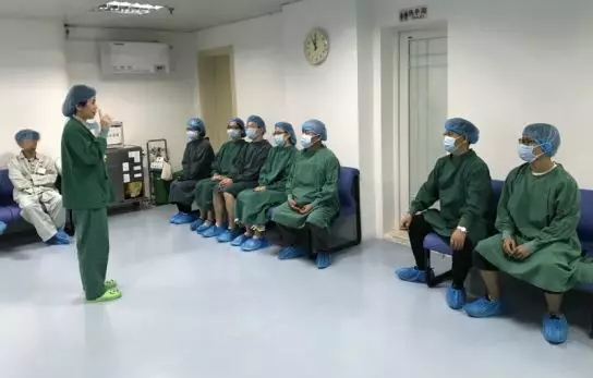 在工作人員的指引下,想觀摩近視手術(shù)的朋友被引導(dǎo)到手術(shù)室參觀。屈光手術(shù)中心陳美珠護(hù)士長(zhǎng)為大家詳細(xì)介紹了近視手術(shù)的相關(guān)流程和注意事項(xiàng),同時(shí)還回答了參觀者的一些問題。