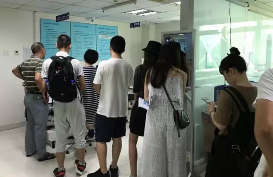 眾人在四樓排隊(duì)等候檢查