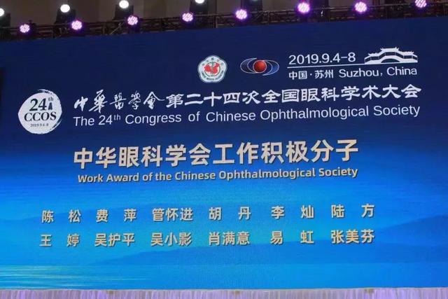 ▲吳護(hù)平教授被授予“中華眼科學(xué)會(huì)工作積極分子”榮譽(yù)稱號(hào)
