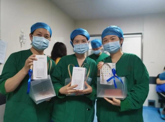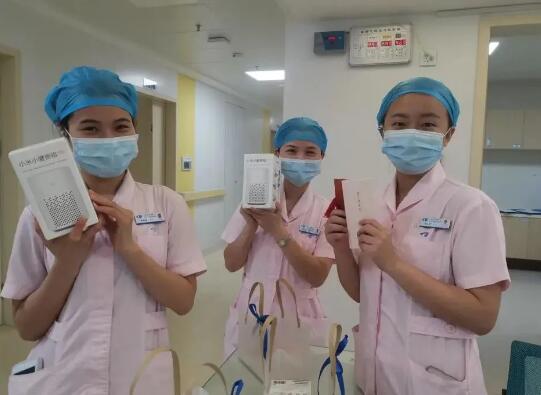 護(hù)理部主任許春麗表示:“今年因?yàn)橐咔榈脑颍o(hù)士們的工作壓力會(huì)更大,特別選擇了小愛(ài)同學(xué)智能機(jī)器人藍(lán)牙音響作為禮物,讓護(hù)士們?cè)诠ぷ髦喔玫姆潘尚那椤?rdquo;