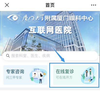 “廈門眼科中心互聯(lián)網(wǎng)醫(yī)院”一站式解決掛號難、繳費難、取藥難等困擾!更開通網(wǎng)上復(fù)診通道,同步門診歷史記錄,幫助醫(yī)生診療,實現(xiàn)在線復(fù)診!