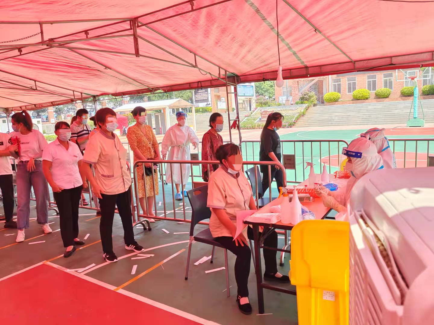 在采樣點(diǎn),醫(yī)護(hù)人員穿戴著又厚又熱的防護(hù)用品,正在有條不紊地進(jìn)行著緊張的采樣工作。“沖鋒在前,吃苦在前。”在高溫的炙烤下,在緊裹的防護(hù)服中,他們沒有絲毫退卻,任汗水濕透衣襟,任雙手雙腳泡得發(fā)白,耐心細(xì)致地為每一位市民做好采集工作。他們用意志錘煉初心,用行動(dòng)書寫決心,全力以赴堅(jiān)決守護(hù)家園,為早日打贏疫情防控殲滅戰(zhàn)作出應(yīng)有的貢獻(xiàn)!