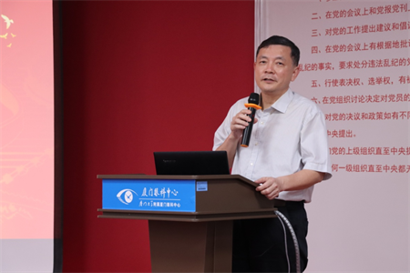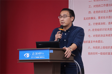 團(tuán)總支換屆選舉大會(huì)結(jié)束后,廈門眼科中心全體黨員、團(tuán)員舉行了黨課學(xué)習(xí)以及重溫入黨誓詞活動(dòng),劉旭陽書記為在場黨員、團(tuán)員上了一堂別開生面的黨課。