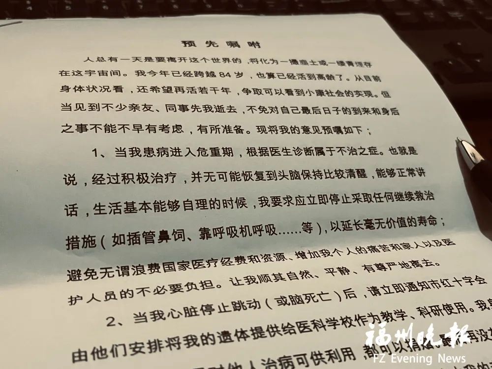 他也明確捐獻遺體意愿。“當(dāng)我心臟停止跳動(或腦死亡)后,請立即通知市紅十字會,由他們安排將我的遺體提供給醫(yī)科學(xué)校作為教學(xué)、科研使用。我身體上任何器官如果對他人治病可供利用,都可以捐贈。如果再沒有用處,可以火化處理。”