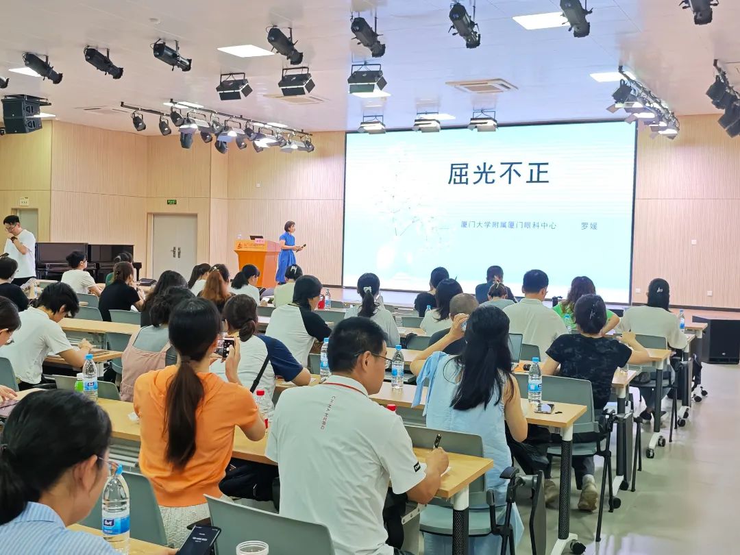 為深入實(shí)施近視防控戰(zhàn)略、提高青少年近視防控的全民意識(shí),日前,廈門眼科中心應(yīng)思明區(qū)教育局邀請(qǐng),于全國近視防控宣傳教育月到來之際,由資深視光醫(yī)生羅媛為思明區(qū)中小學(xué)和幼兒園老師、校醫(yī)進(jìn)行一場生動(dòng)而實(shí)用的近視防控講座。