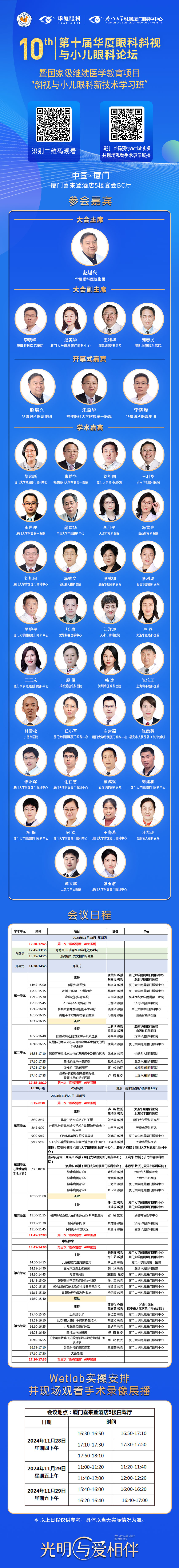 本屆會(huì)議主席由國(guó)內(nèi)斜視與小兒眼科界領(lǐng)軍人、華廈眼科醫(yī)院集團(tuán)專家委員會(huì)主席趙堪興教授及廈門大學(xué)附屬?gòu)B門眼科中心業(yè)務(wù)副院長(zhǎng)潘美華教授、李曉峰教授、王利華教授、劉春民教授共同擔(dān)任,會(huì)議榮幸地邀請(qǐng)到眾多國(guó)內(nèi)著名專家強(qiáng)勢(shì)助陣。