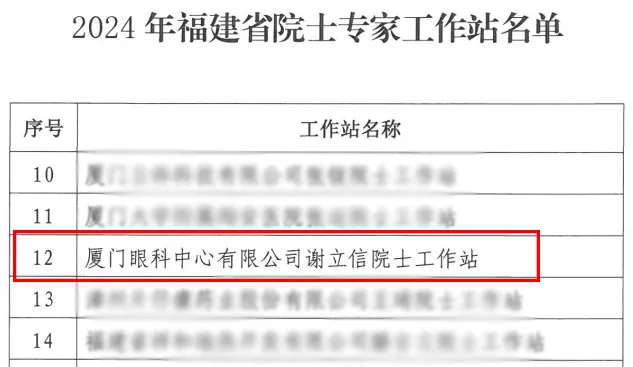 2020年,廈門眼科中心謝立信院士工作站以突出的水平和實力通過評審,2024年再次順利通過認定。