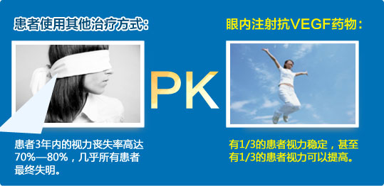 濕性老年性黃斑變性患者中心視力迅速喪失,嚴(yán)重的可在2~3個(gè)月內(nèi)失明,目前沒有有效的治療的方法,濕性老年性黃斑變性是抗VEGF藥物的治療適應(yīng)癥。