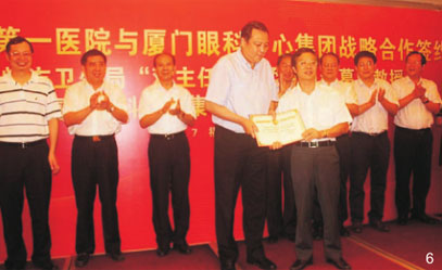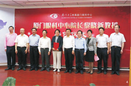 - 聘請黎曉新教授為廈門大學(xué)附屬廈門眼科中心院長。廈門市常委、組織部長陳秋雄(現(xiàn)為廈門市委副書記)頒布聘書,廈門大學(xué)黨委書記張彥等領(lǐng)導(dǎo)出席見證。