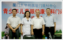 10月23日,廈門大學(xué)附屬廈門眼科中心“青少年兒童眼健康??崎T診”正式掛牌成立,廈門市教育局任勇副局長、廈門市衛(wèi)生局洪豐穎副局長、廈門市中小學(xué)衛(wèi)生保健所余紅等領(lǐng)導(dǎo)出席了此次揭牌儀式并發(fā)表了熱情洋溢的講話。市領(lǐng)導(dǎo)們一致認(rèn)為,廈門大學(xué)附屬廈門眼科中心“青少年兒童眼健康專科門診”的成立,是造福于我市少年兒童視覺健康的一件大事,也是我省防盲治盲事業(yè)的一件大事,必將帶動我省兒童防盲事業(yè)的發(fā)展。[詳細(xì)]...