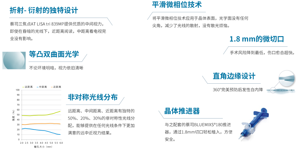 提供三個焦點,覆蓋了距離范圍,將白內(nèi)障、老花眼術(shù)后遠(yuǎn)、中、近全程優(yōu)視力變?yōu)楝F(xiàn)實。