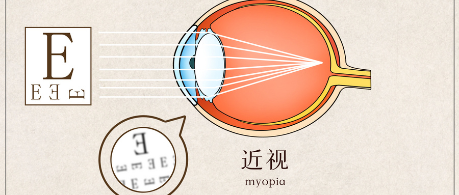 當(dāng)角膜和晶狀體曲率過(guò)大或者眼球太長(zhǎng),光線聚焦在視網(wǎng)膜前,此時(shí)稱為近視。這時(shí)候看近沒(méi)問(wèn)題,看遠(yuǎn)不清楚。