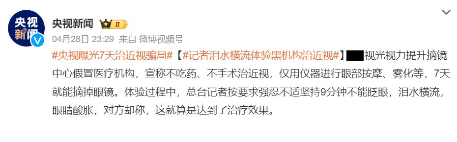近日,某視光視力提升摘鏡中心”的機(jī)構(gòu)自稱在全國(guó)400多個(gè)城市有1600多家門店,宣稱不吃藥、不手術(shù)治近視,僅僅用他們研制的“神藥”“神秘儀器”進(jìn)行眼部的按摩、涂抹、霧化等,7天就能摘掉眼鏡。