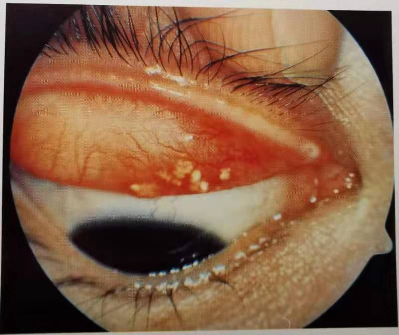 眼結(jié)石,其實是結(jié)膜發(fā)生慢性炎癥時,結(jié)膜脫落的上皮細(xì)胞、黏液成分和脂肪等成分長期堆積,從而形成的一顆顆類似于結(jié)石的東西。眼結(jié)石在外觀上是質(zhì)地堅硬的黃白色小點,我們可以在瞼結(jié)膜上看到這些小點狀的突起,形狀就像碎米粒,有的眼結(jié)石呈散點狀,有的可能比較密集,集結(jié)成群。